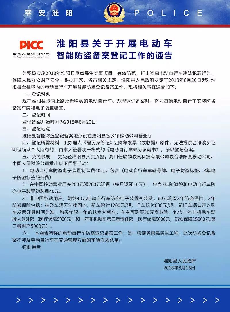 小編從公安局了解到,自2018年8月20日起,淮陽縣公安局將組織全縣群眾統(tǒng)一開展電動車防盜備案工作。