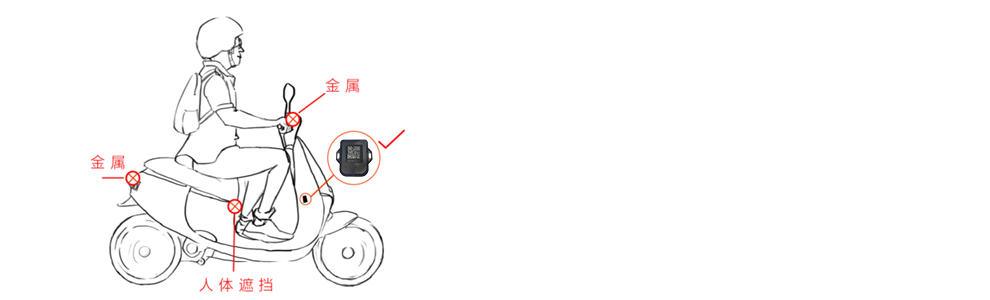 安裝在電動車上時,采用可以采用工業(yè)膠水也可以采用3M海綿雙面膠粘貼。安裝環(huán)境和安裝方向請嚴(yán)格遵守,否則會影響信號的強(qiáng)度。