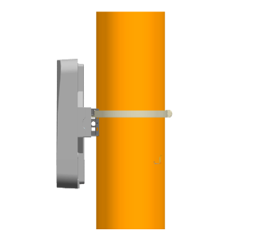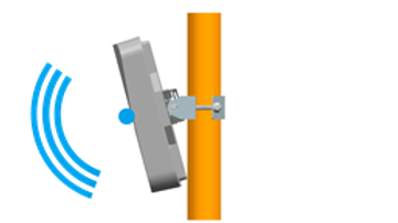 3) 全向基站通過抱箍固定在電線桿上,位置必須是垂直于地面(如下圖),否則會嚴重影響基站的通訊性能和信號強度。