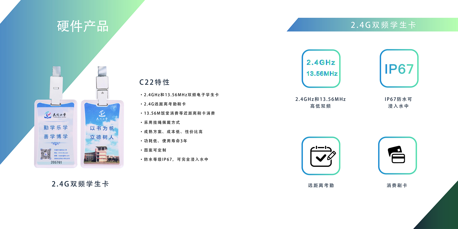 2.4G雙頻校園卡C22學(xué)生智能卡,是學(xué)生進(jìn)出校門的電子學(xué)生證,由學(xué)生隨身佩帶或攜帶。