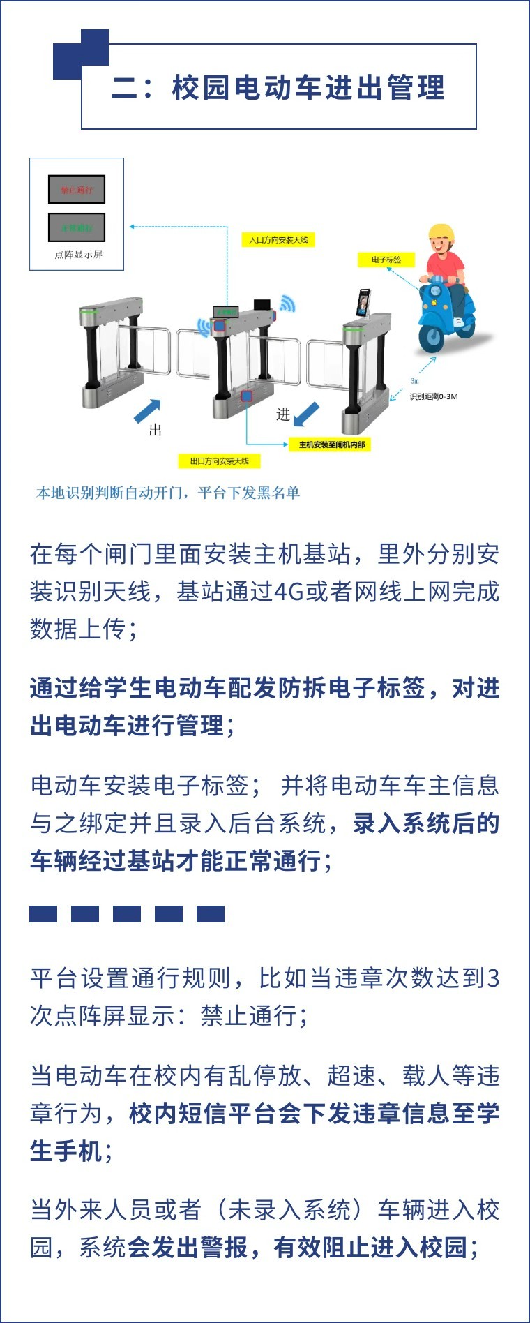 為維護(hù)校園良好的教學(xué)、工作和生活秩序,保障師生學(xué)生人身安全和校園財(cái)產(chǎn)安全,減少各類事故發(fā)生,營建良好的校園環(huán)境和停車秩序,創(chuàng)新推出智慧校園綜合管理解決方柔。